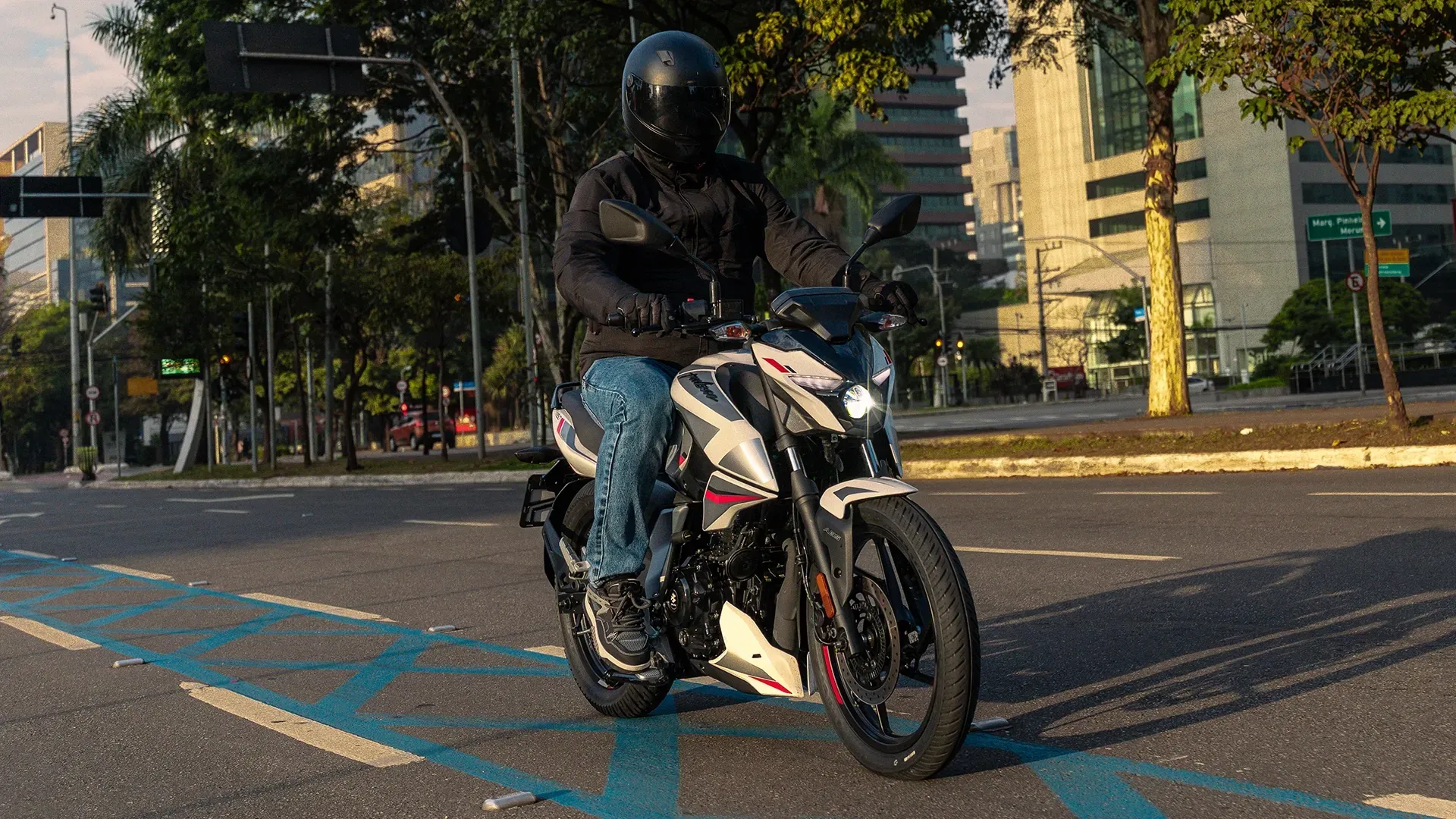 Mas na cidade, segurança é prioridade. Por isso, a Pulsar N150 vem equipada com
